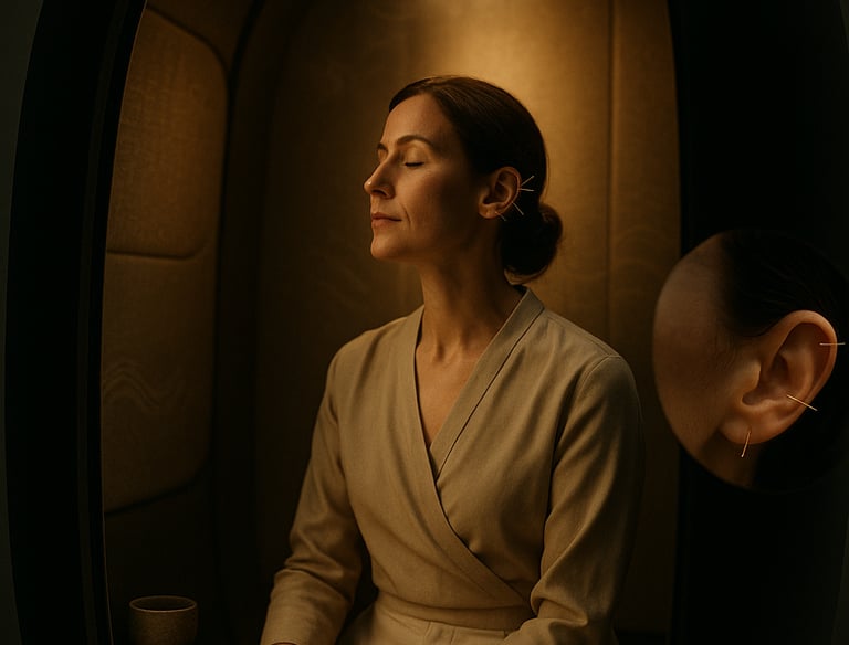 The AURA Q Protocol is a precision system combining auricular acupuncture with binaural frequency therapy to optimise nervous-system regulation and cognitive performance.