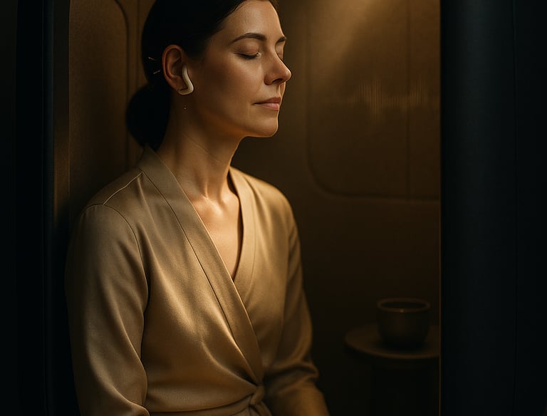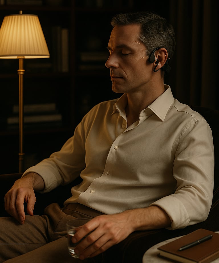 Each 20-minute session combines targeted auricular stimulation with frequency-guided sound, optimising stress resilience and mental clarity.